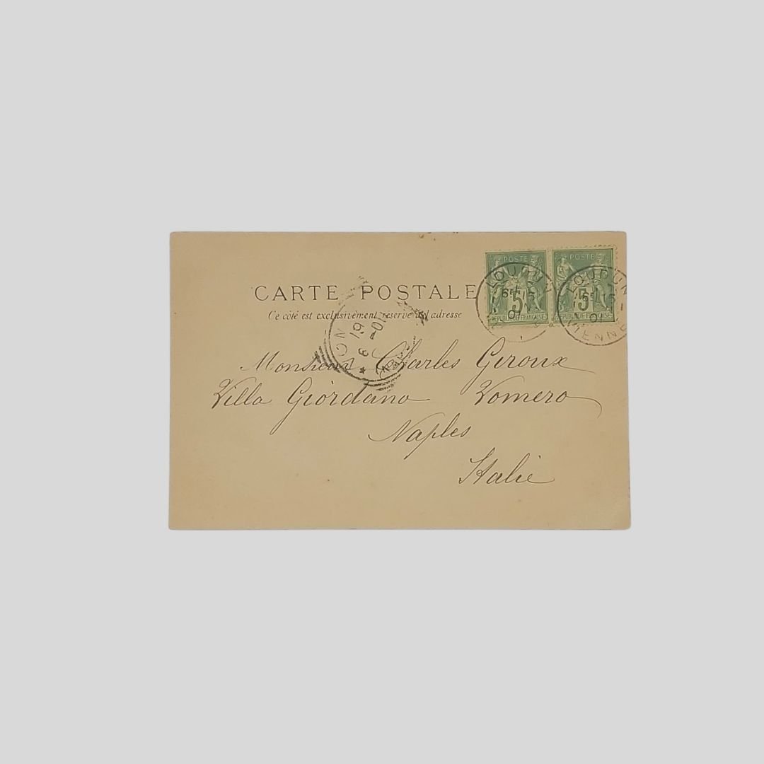 Cartolina d’epoca. Undivided back. Viaggiata, invio del 15/6/1901, cm 14×9. Francobolli, timbri. Lievi Tracce d’uso.