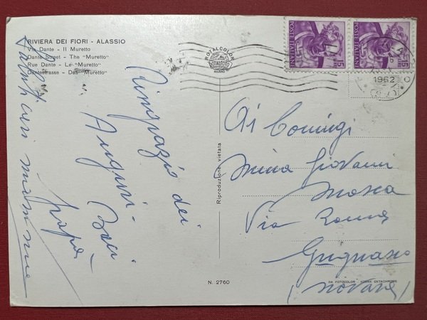 Cartolina - Alassio - Riviera dei Fiori - Via Dante - Il Muretto - 1962