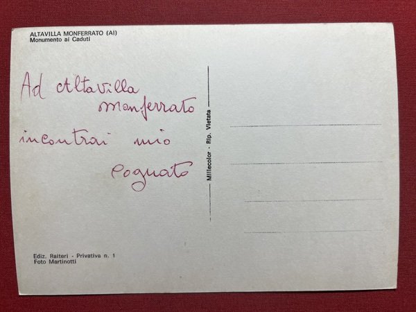 Cartolina - Altavilla Monferrato ( Alessandria ) - Monumento ai Caduti - 1970 ca