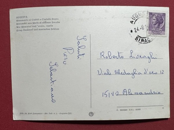 Cartolina - Augusta ( Siracusa ) - Monumento ai Caduti e Castello Svevo - 1968