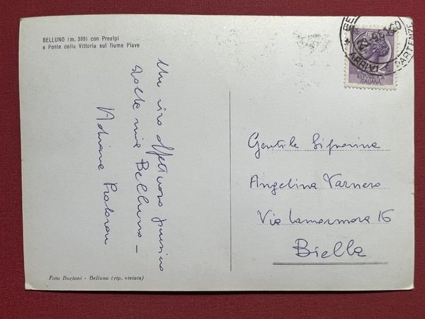 Cartolina - Belluno con Prealpi e Ponte della Vittoria sul Fiume Piave - 1960