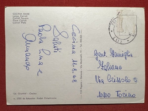 Cartolina - Cecina Mare ( Livorno ) - Largo Cairoli - 1968