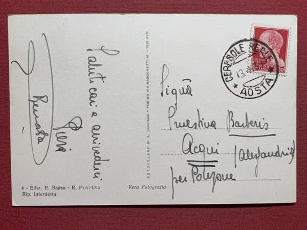 Cartolina - Ceresole Reale ( Torino ) - Entrata al Paese e Sfondo Levanne - 1939