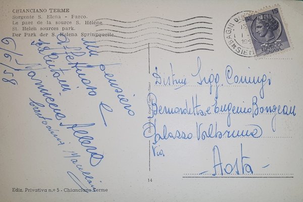Cartolina - Chianciano Terme - Sorgente S. Elena - Parco - 1958 | Postcards |