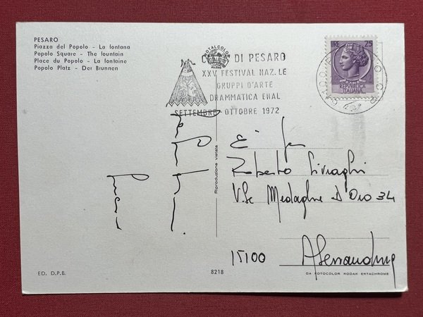Cartolina - Pesaro - Piazza del Popolo - La Fontana - 1972