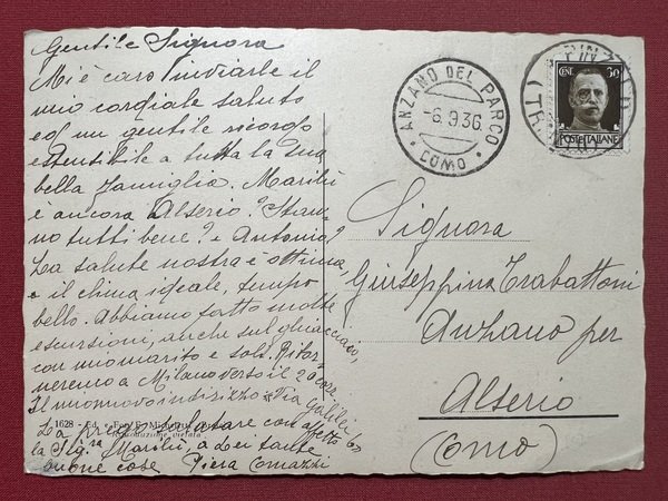 Cartolina - Pinerolo ( Torino ) e le Dolomiti di Brenta - 1936