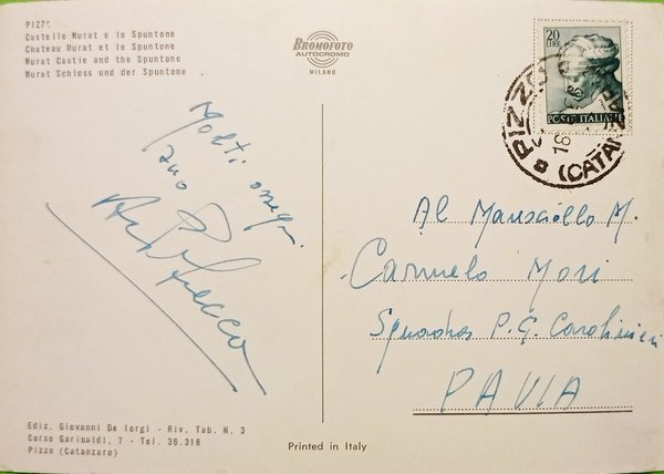 Cartolina - Pizzo - Castello Murat e lo Spuntone - 1956