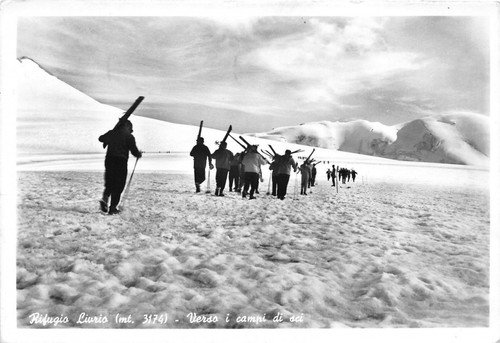 Cartolina - Postcard - Rifugio Livrio - Verso i camp i da sci - animata - 1961