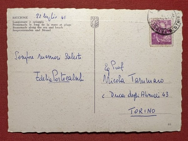 Cartolina - Riccione ( Rimini ) - Lungomare e Spiaggia - 1961