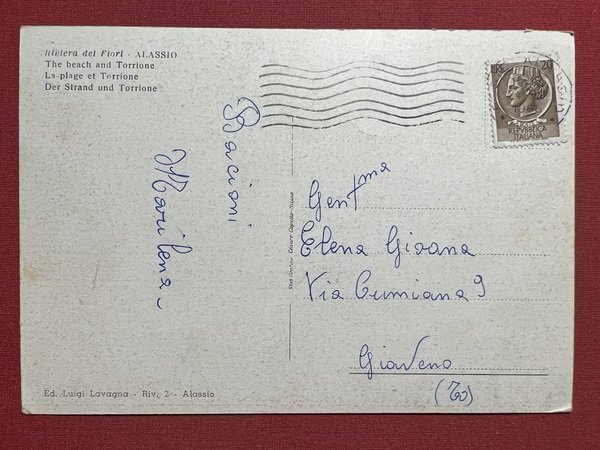 Cartolina - Riviera dei Fiori - Alassio - La Spiaggia e Torrione - 1965
