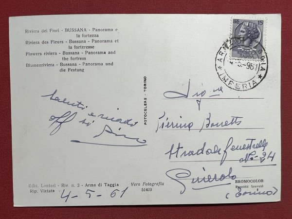Cartolina - Riviera dei Fiori - Bussana - Panorama e la Fortezza - 1961