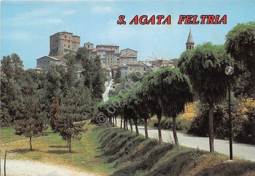Cartolina - S. Agata Feltria - panorama parziale - castello - 1987