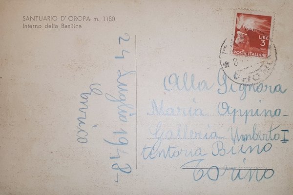 Cartolina - Santuario d'Oropa - Interno della Basilica - 1948 | Postcards |