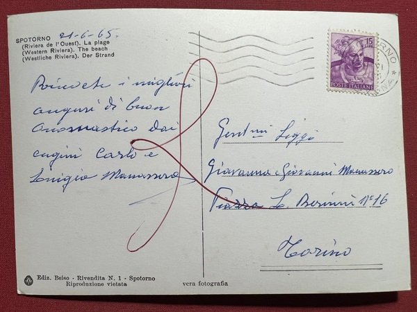 Cartolina - Spotorno ( Savona ) - Riviera di Ponente - La Spiaggia - 1965