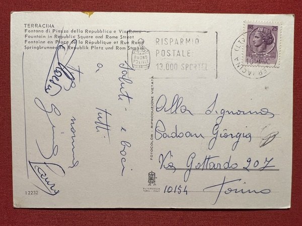 Cartolina - Terracina ( Latina ) - Fontana di Piazza della Repubblica - 1973