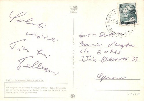 Cartolina Bari Campanile della Provincia panorama lungomare