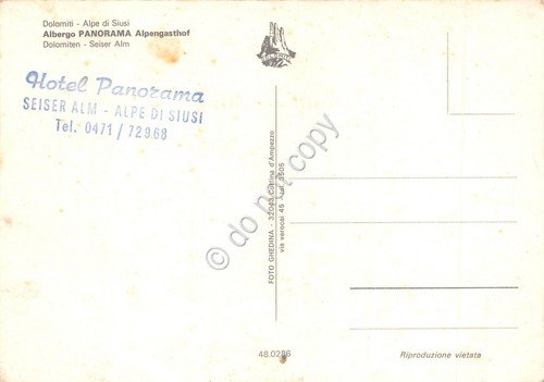 Cartolina Dolomiti Alpe di Siusi Hotel Panorama animata sci sciatori grinza