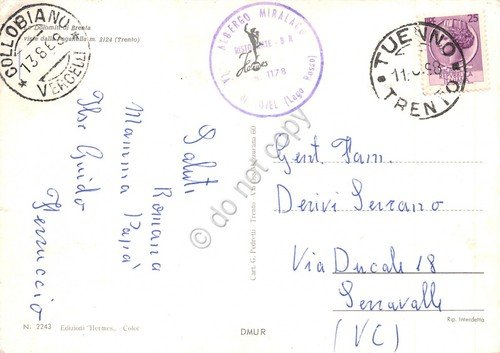 Cartolina Dolomiti del Brenta vedute cime dei monti timbro Albergo Miralago 1968 | Postcards |