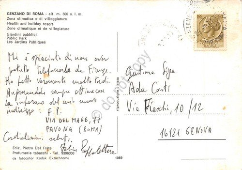 Cartolina Genzano di Roma Giardini Pubblici | Postcards |