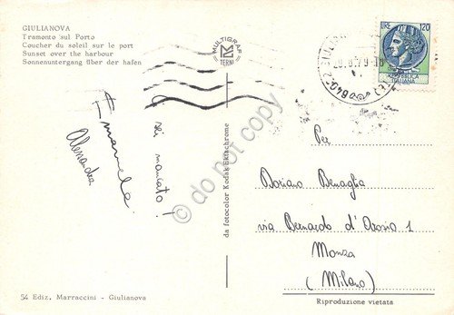 Cartolina Giulianova tramonto sul porto 1979 (Teramo)