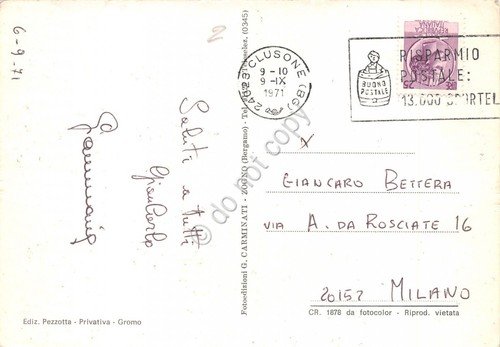 Cartolina Gromo 4 vedute panorama Chiesa Alpini Fiume Serio Chiesa parrocchiale