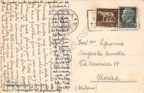 Cartolina illustrata paese fiume alberi spedita da Roma a Monza anni '30