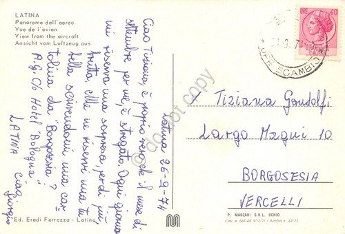 Cartolina Latina Panorama aereo 1974