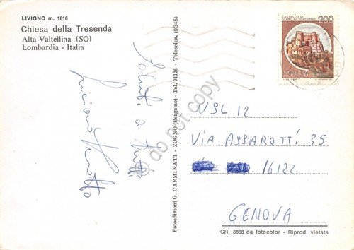 Cartolina Livigno Chiesa della Tresenda (Sondrio)