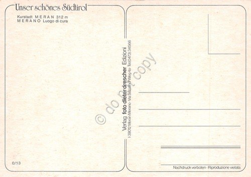 Cartolina Merano vedute varie città via giardini anni '80