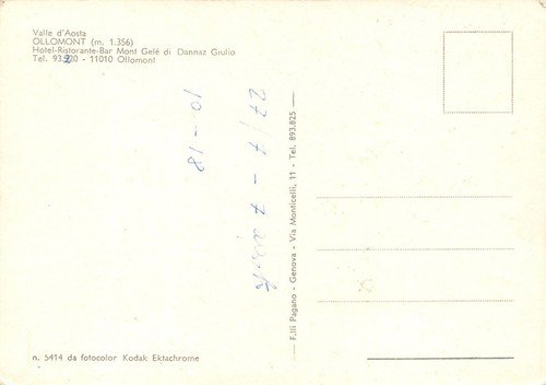 Cartolina Ollomont Hotel Ristorante Mont Gelè
