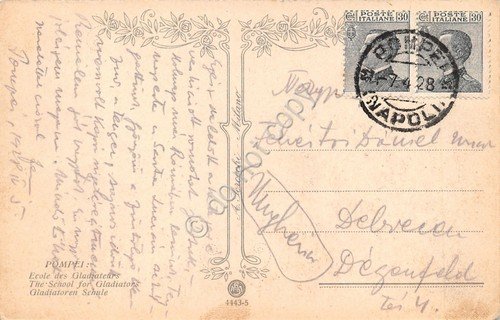 Cartolina Pompei Scuola dei Gladiatori illustrata Ed. Scrocchi 1928