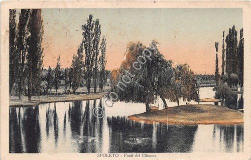 Cartolina Spoleto Fonti del Clitunno Illustrata 1934 (Perugia)