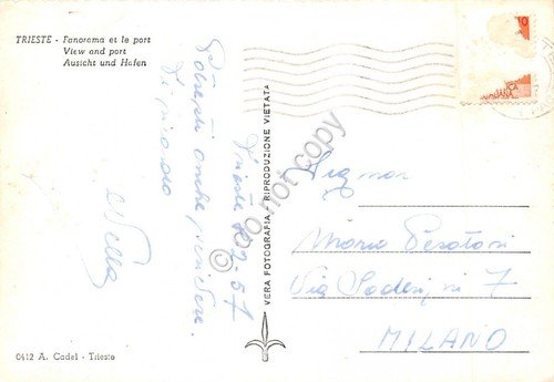 Cartolina Trieste Panorama e porto 1957