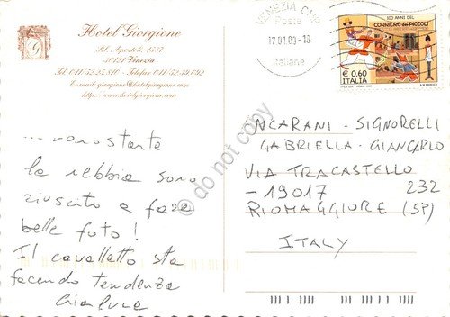 Cartolina Venezia Hotel Giorgione Illustrata 2009 formato cm 17 x 12