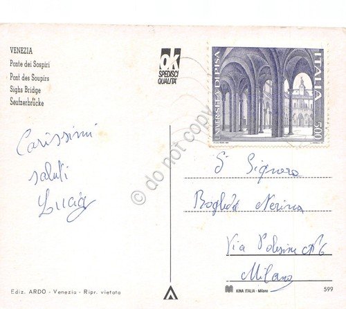 Cartolina Venezia Ponte dei Sospiri gondola animata