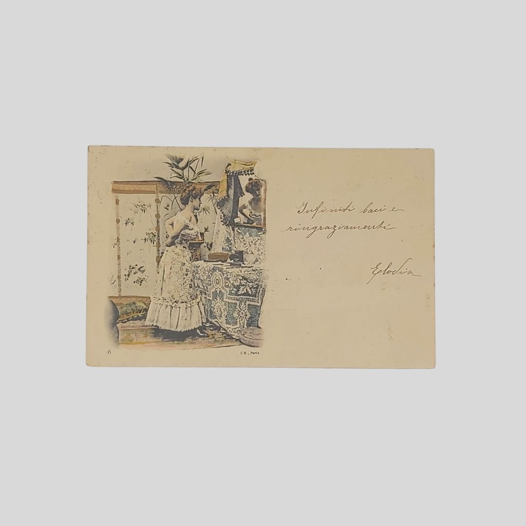 Cartolina d’epoca. Undivided back. Viaggiata, s.d. (primi ‘900), cm 14×9. Francobollo, timbri. Lievi Tracce d’uso.