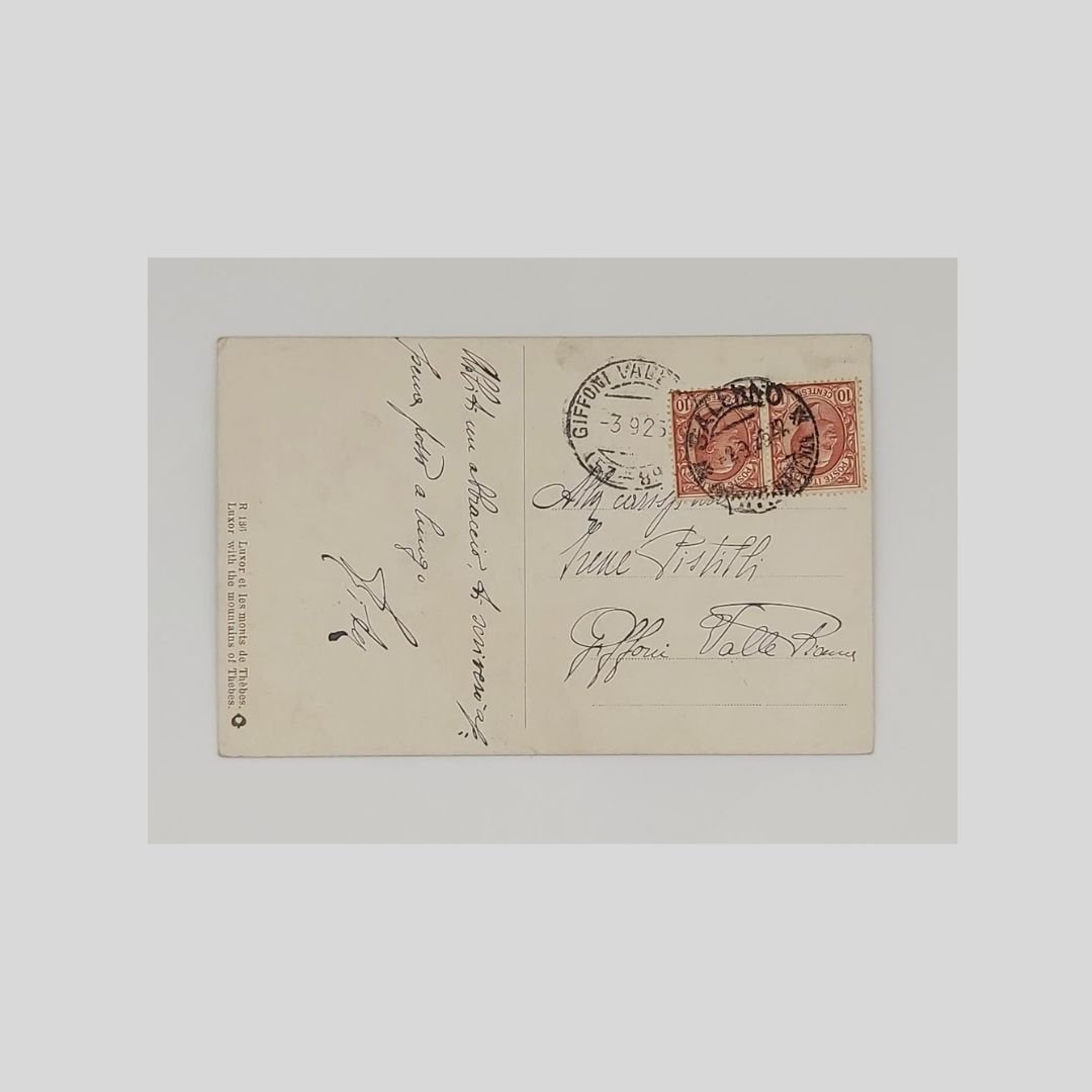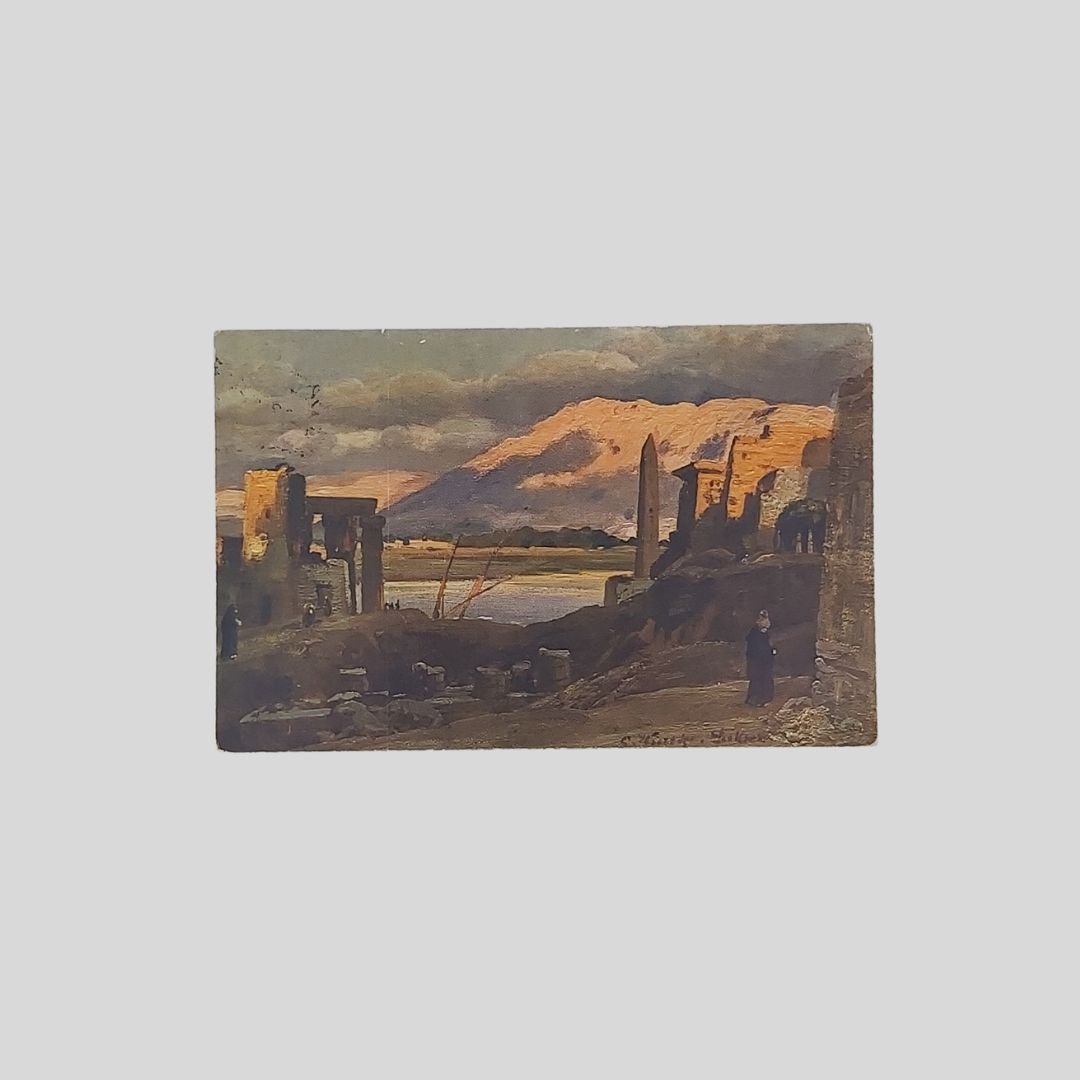 Cartolina pittorica d’epoca. Viaggiata, cm 13,8×8,9. Francobolli, timbri (3/9/1925). Tracce d’uso agli angoli.