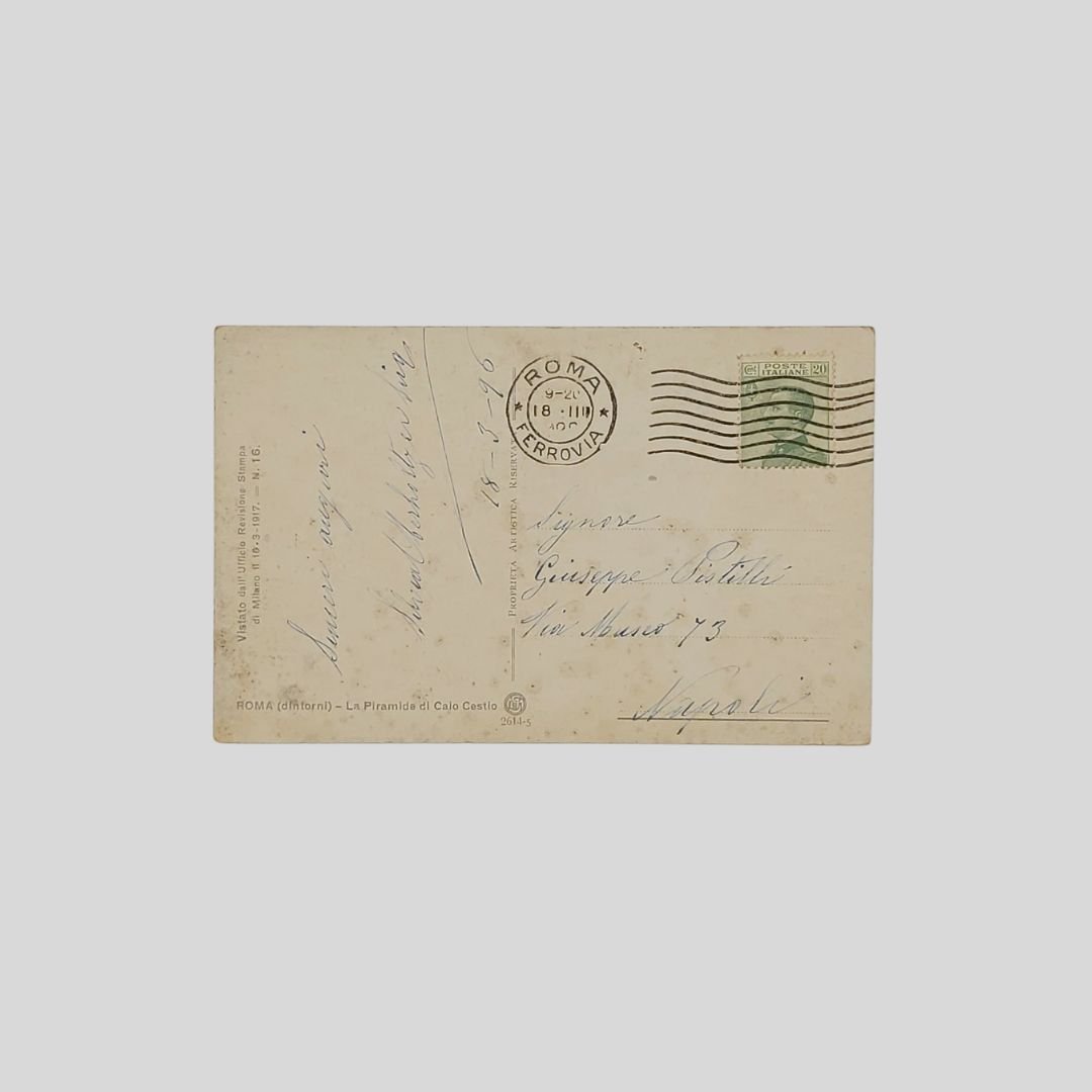 Cartolina pittorica d’epoca. Viaggiata, invio del 18/3/1926, cm 14×9. Francobollo, timbro. Tracce d’uso al verso.