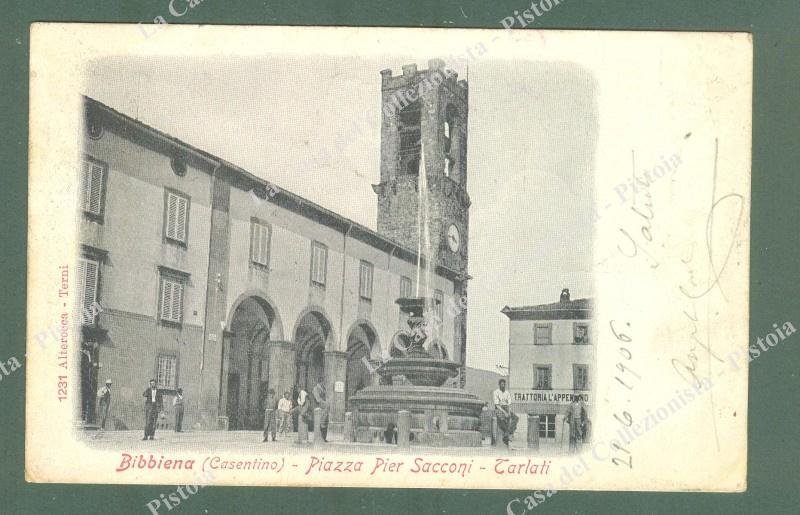 Toscana. BIBBIENA, Arezzo. Piazza Pier Sacconi. Cartolina d'epoca viaggiata nel 1906. (Rif.E3031)