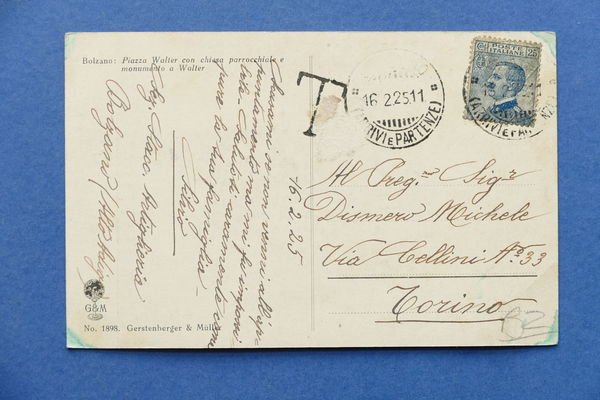 Cartolina Bolzano - Piazza Walter con Chiesa Parrocchiale e monumento a Walter 1925 Cartolina formato piccolo - viaggiata Condizioni buone, come da foto Per appassionati, studiosi e collezionisti
