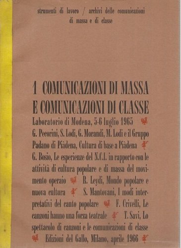 1 COMUNICAZIONI DI MASSA E COMUNICAZIONI DI CLASSE LABORATORIO DI MODENA LUGLIO 1965