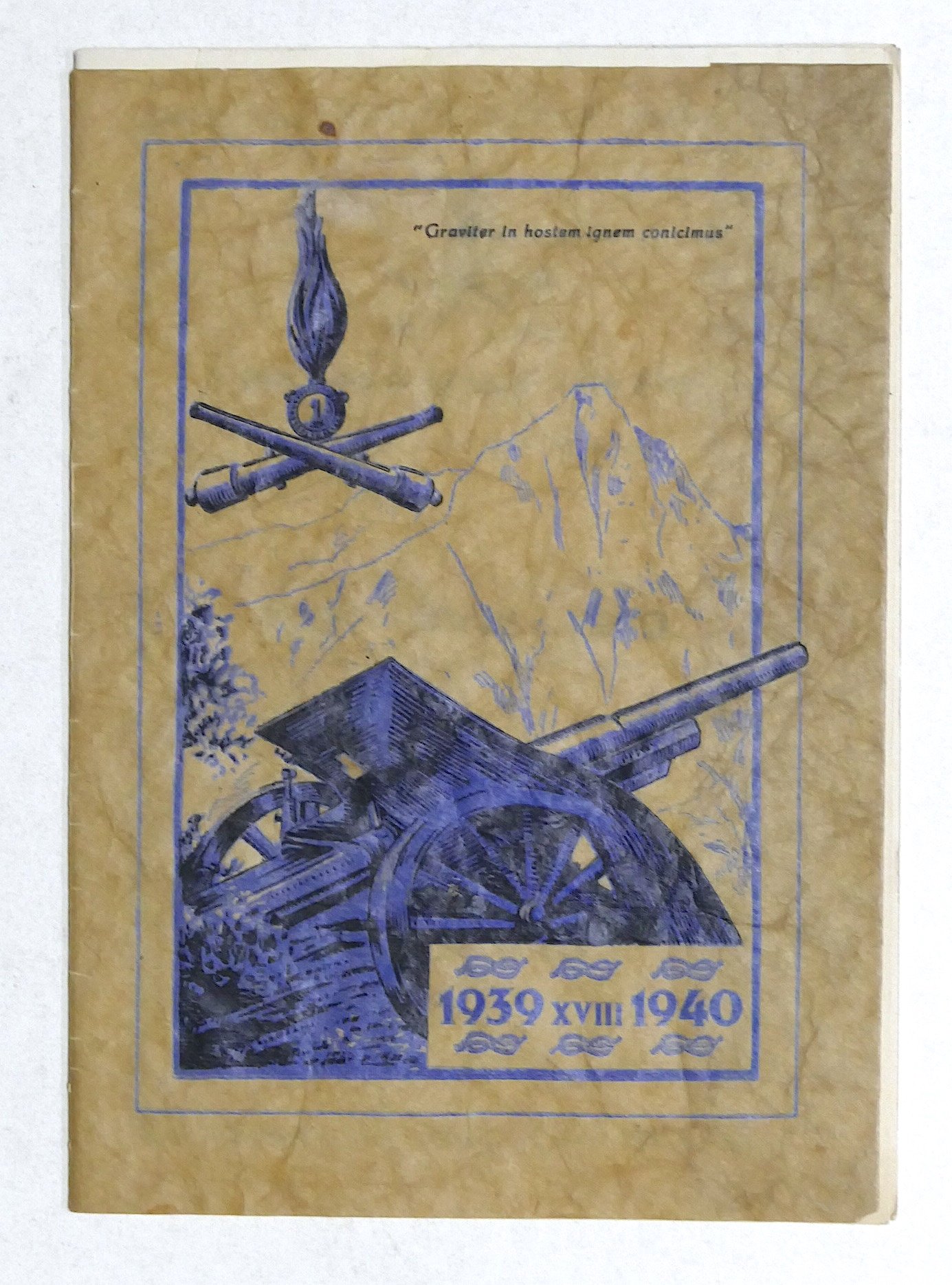 1° Reggimento Artiglieria di Corpo d'Armata - 1939 - 1940 - Casale Monferrato Dimensioni: 20 x 29 cm ca. Copertina in pergamena - Lingua italiana. 2 pagine con elenco degli Ufficiali Condizioni molto buone.
