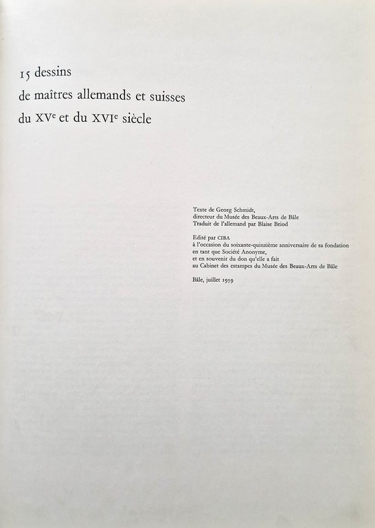 15 Dessins de maitres allemands et suisses du XV et du XVI siècle. Traduit de l'allemand par Blaise Briod.