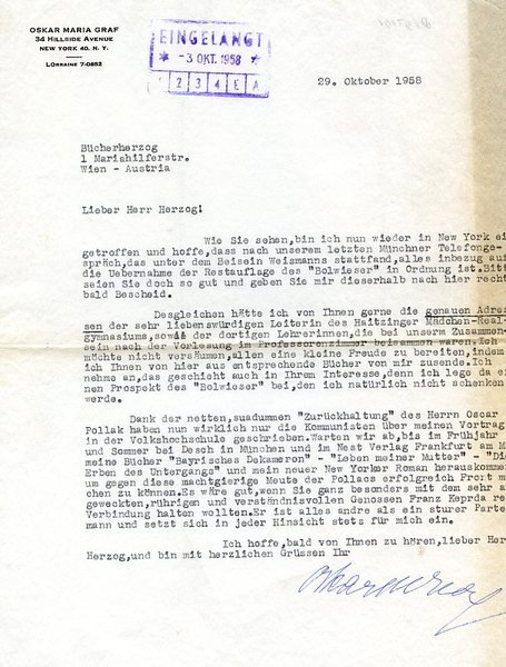 • Graf, Oskar Maria, Writer (1894-1967).
