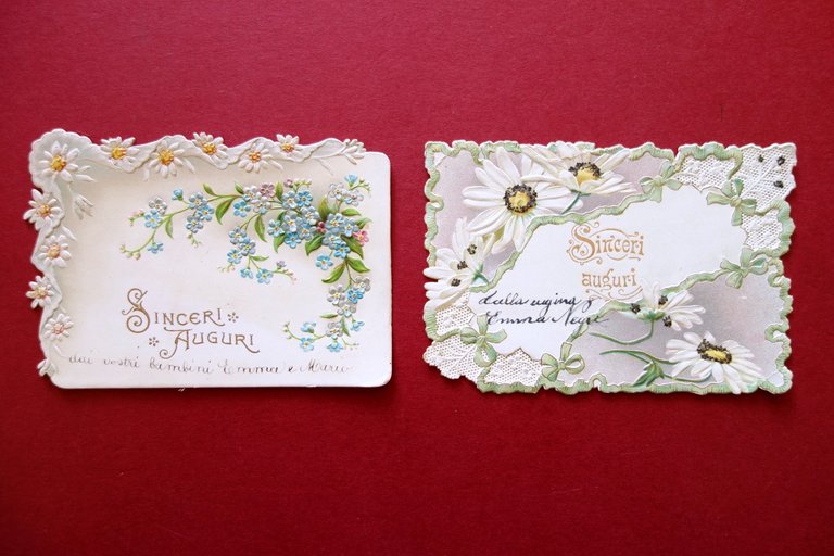 2 Cartoncini per Auguri Grafica Floreale Cromolitografia Primo '900