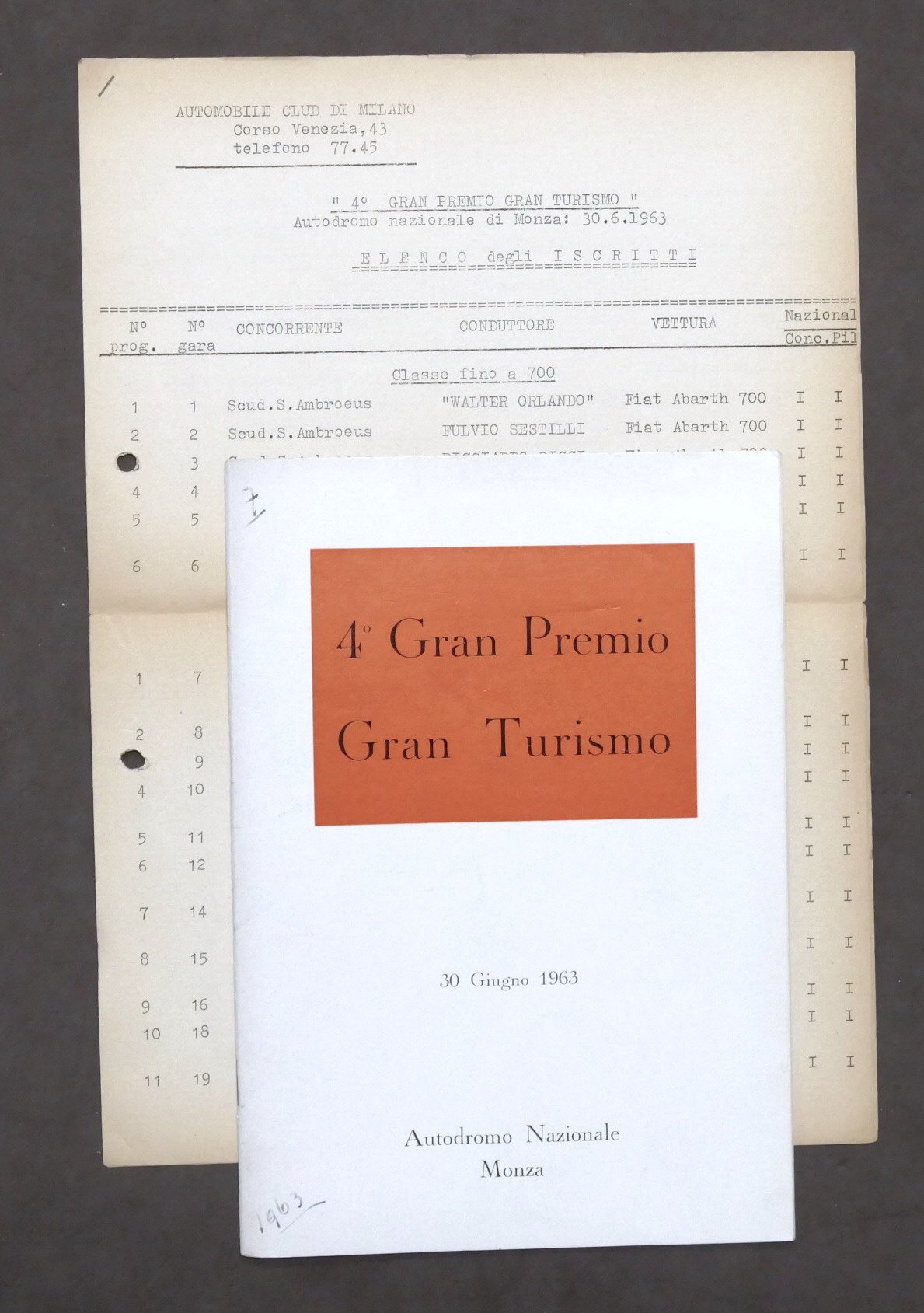 Sport Automobilismo 4° Gran Premio Turismo Regolamento - Allegata documentazione ufficiale: elenco iscritti Autodromo Nazionale di Monza - 30 giugno 1963 Pag. 17 Copertina morbida - Testo in italiano Condizioni molto buone.