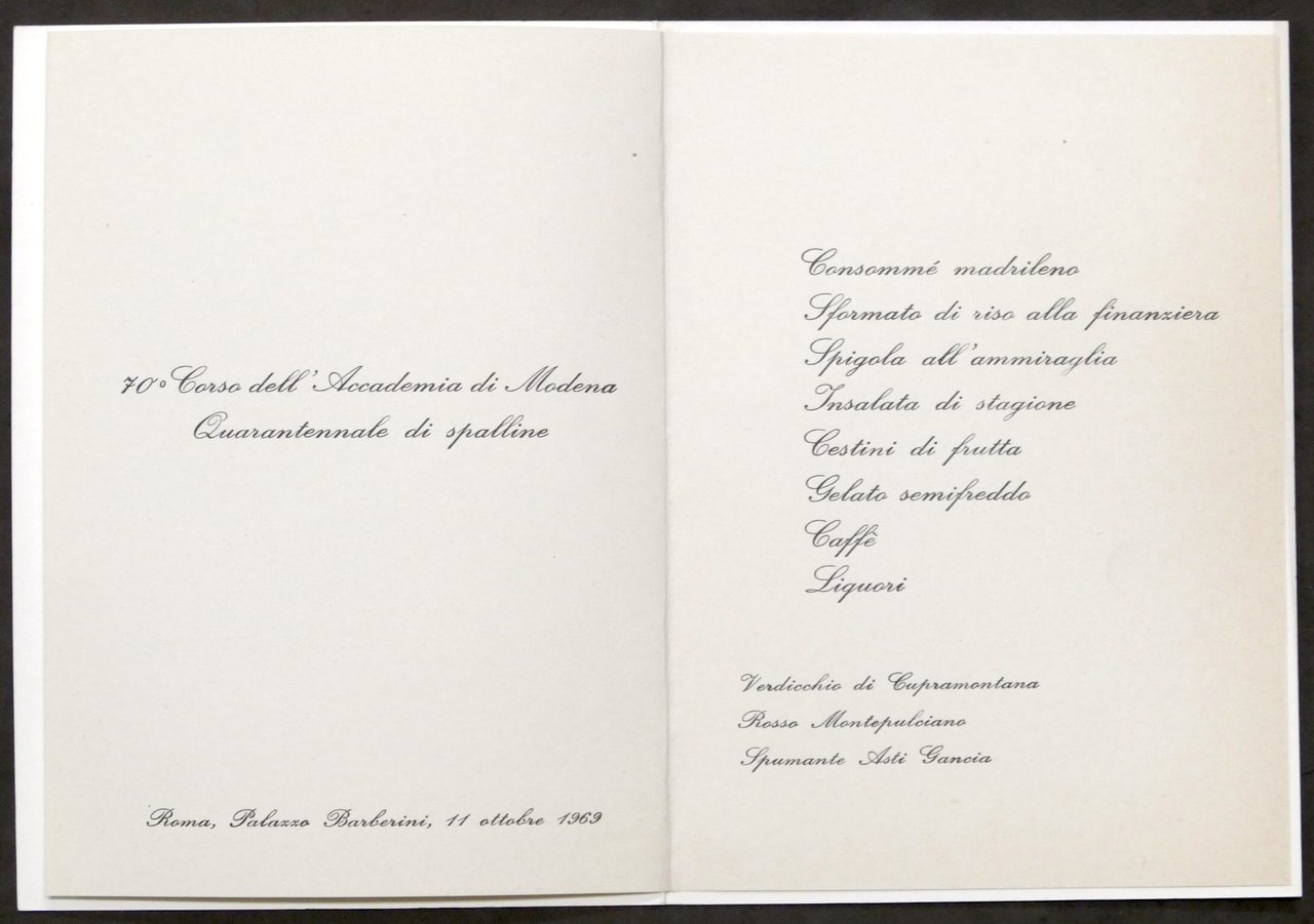 70° Corso Accademia di Modena Quarantennale di Spalline - Menu - 11 Ottobre 1969