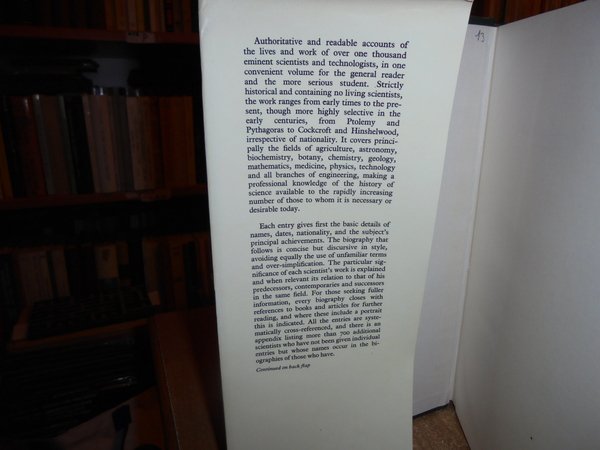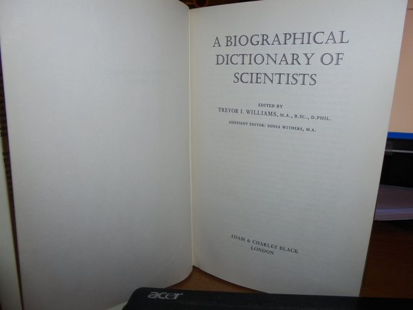 TREVOR I. WILLIAMS. London, Adam & Charles Black, 1969. A Bibliographical Dictionary of Scientist. In-8°, tela edit. con titolo in oro sul dorso, sovracopertina. xi, 592 pp. con testo su due colonne. Ottimo esemplare. Uff. C - IV - 3