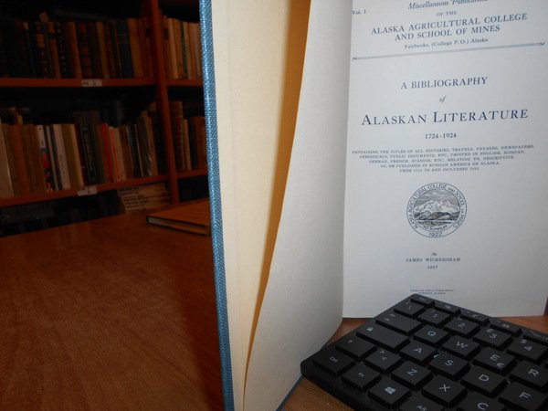 JAMES WICKERSHAM. Cordova, Daily Times Print Alaska, 1927. A Bibliography of ALASKAN LITERATURE 1724-1924. Vol. I. Containing the titles of all Histories, Travels, Voyages, Newspapers, Periodicals, Public Documents, Etc., Printed in English, Russian, German. In-8°, tela con titolo in oro al dorso. xxvii, 635 pp. Ottimo esemplare. Uff. B - III - 7 - 2