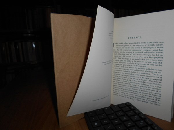 A Bibliography of David Hume and of Scottish Philosophy. In-8° piccolo, tela edit. bleu con titolo in oro al dorso, sovracopertina. xiv, 201 pp. Come nuovo. Uff. D - II - 5